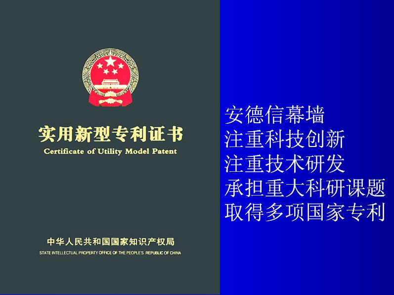 自公司成立以來,安德信幕墻專注既有幕墻行業,研發了若干新技術、新方法,獲得多項國家專利證書。 廣泛運用這些專利技術,并結合其他技術手段,在全國多個省市,進行了多項既有幕墻檢測鑒定與維修維護,以及新建幕墻設計、施工等。