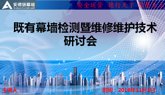 11月1日上午,在安德信幕墻公司,總經(jīng)理許曙光先生簡(jiǎn)要介紹了安德信幕墻的發(fā)展歷程與現(xiàn)狀;總工程師司耀黎先生系統(tǒng)介紹了安德信幕墻在既有幕墻檢測(cè)鑒定與維修維護(hù)方面的新技術(shù)、新方法以及最新科研成果。