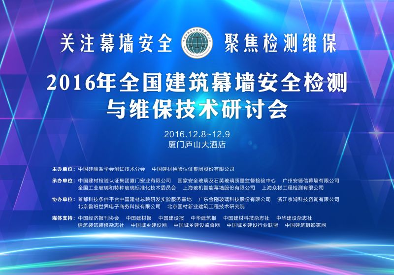 12月8—9日,“2016年全國建筑幕墻安全檢測與維保技術研討會”在廈門廬山大酒店隆重召開。