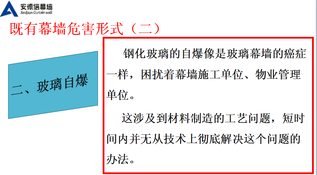 12月5日,安德信幕墻和大家一起討論了既有幕墻常見問題與維修維護(一):開啟扇。 今天,我們再來討論第二個問題:玻璃自爆。