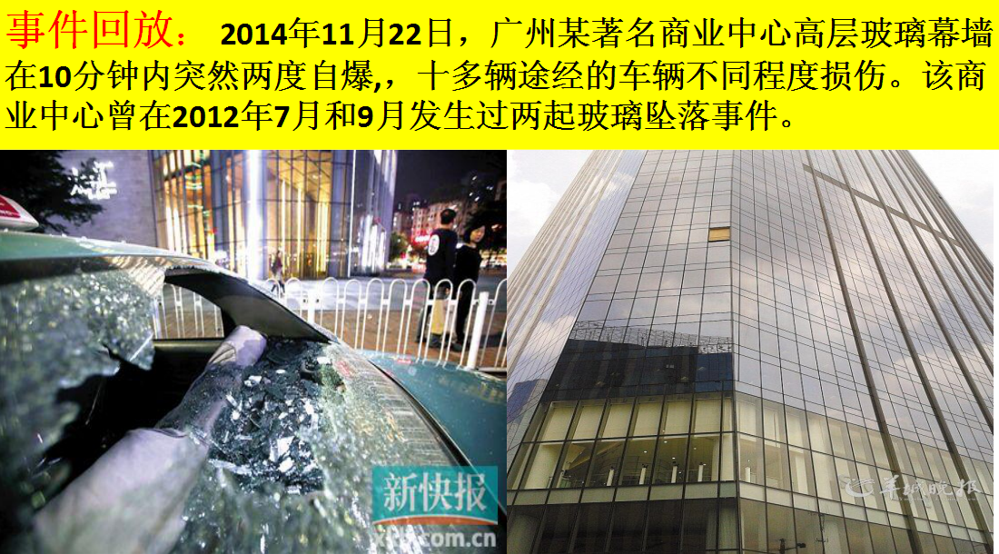 近些年來,在國內外一些城市,曾經發生多起既有幕墻的玻璃自爆事件,給業主帶來一定經濟損失,有些還砸壞了停放在樓下的車輛,甚至導致人員傷亡、造成了一定的社會影響。