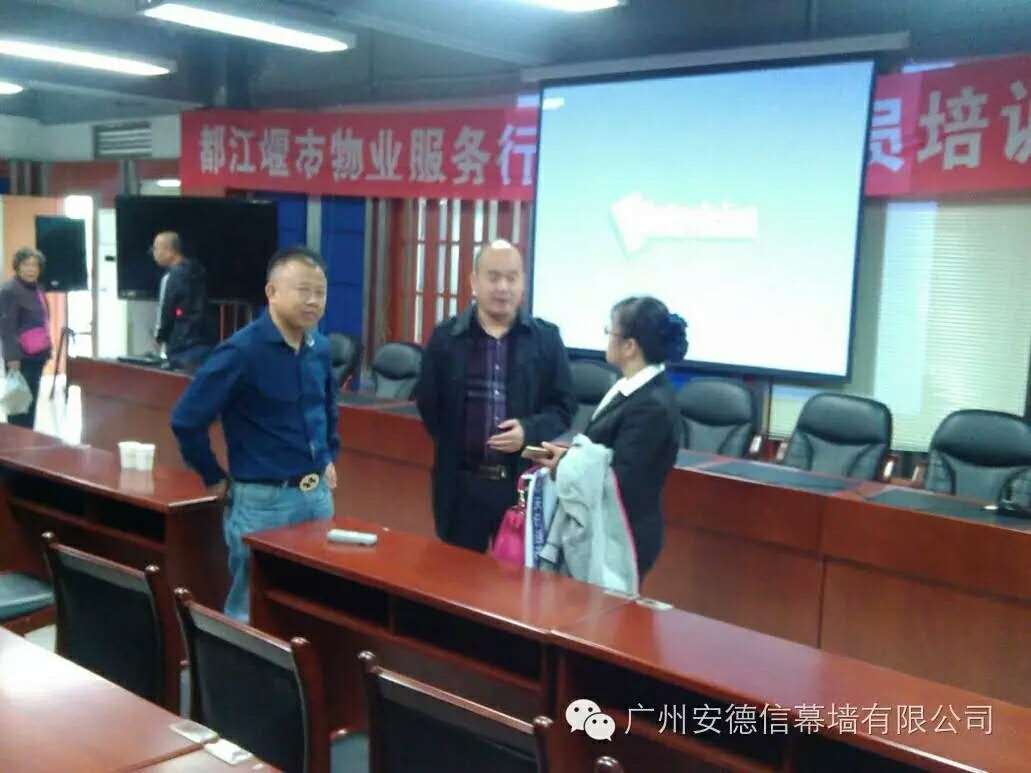 2016年10月26日,在四川省“都江堰市物業管理行業協會培訓大會”上, 王文歡先生就幕墻物業的安全隱患與管理維護做了主題演講, 并和物業公司負責人討論交流。