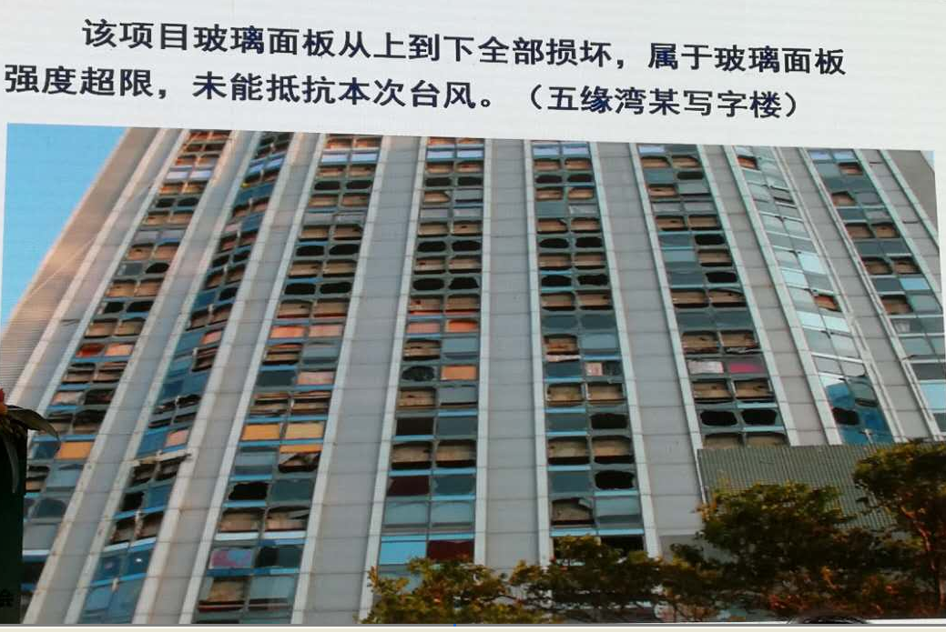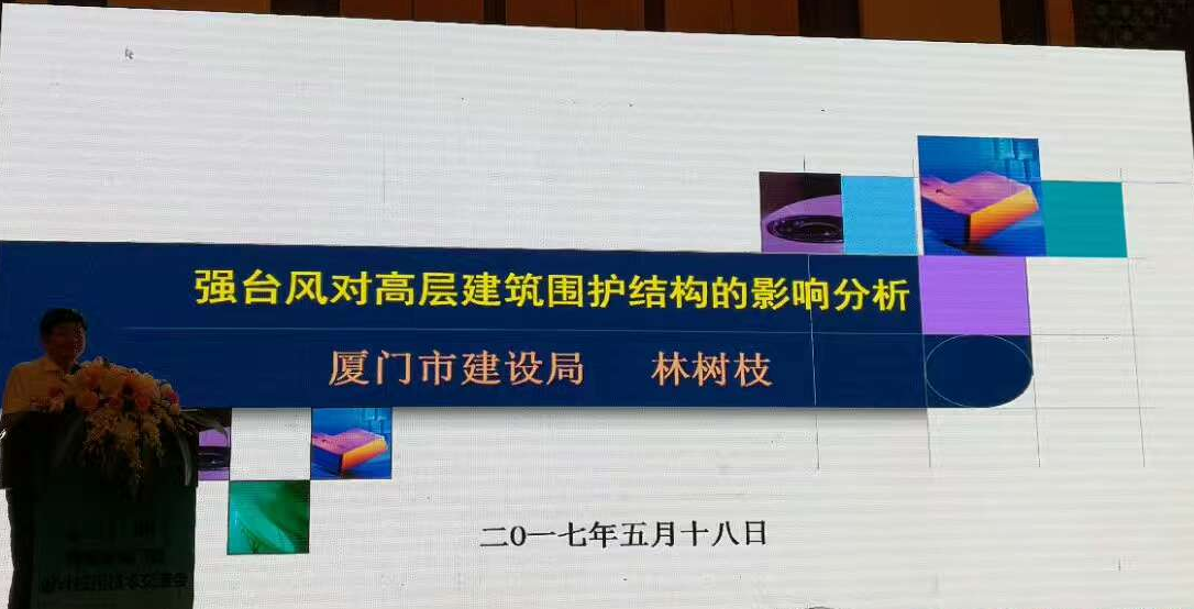 林樹枝先生、趙西安教授等5名領導、專家,發表了精彩演講。 林樹枝先生:四點應對措施,強化高層建筑圍護結構 廈門市建設局巡視員、副局長、教授級高級工程師林樹枝先生,發表了《強臺風對高層建筑圍護結構的影響分析》的主題演講。 林樹枝先生列舉了廈門多個地區,代表性工程在臺風中的表現,從質量安全與受損程度等方面,深刻分析了幕墻門窗的主要受損原因:風速超過規范規定的范圍,造成玻璃局部所受風壓達到承載極限而破碎;以及單片玻璃位于外側,夾膠層在內側,玻璃面板易發生碰撞損壞。