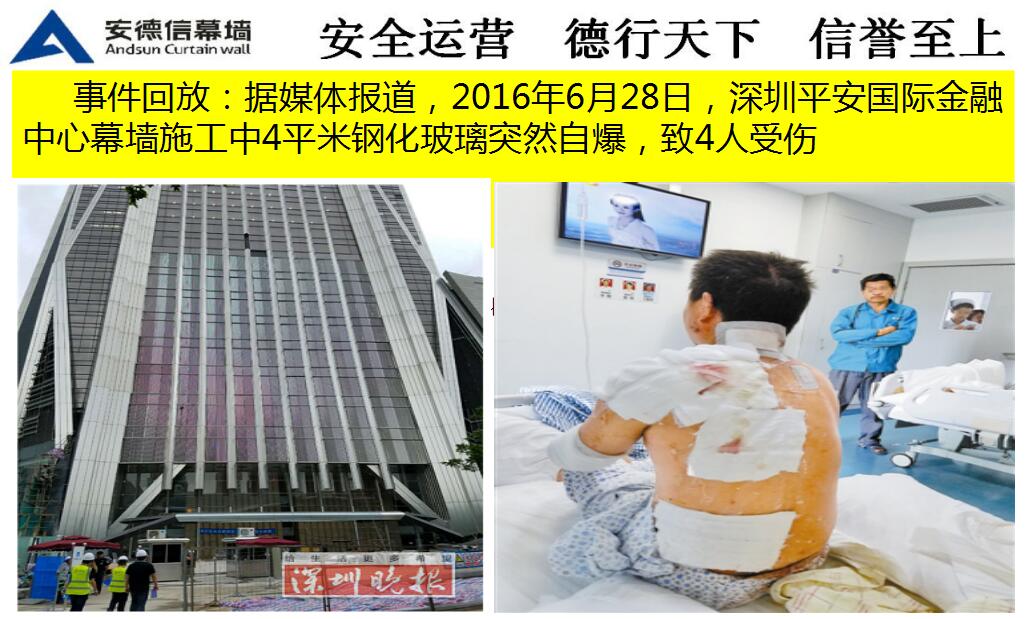 公共場所恐難再建玻璃幕墻 與民用建筑不同,玻璃幕墻主要被安設在市中心人流密集場所,在寫字樓、購物城、醫院等公共場所你皆能輕而易舉看見玻璃幕墻的身影。然而正因人流密集,一旦玻璃幕墻發生爆裂最嚴重時將危及行人的生命安全。 2016年6月28日,深圳平安國際金融中心幕墻施工中4平米鋼化玻璃突然自爆,致4人受傷。最嚴重的當屬北京朝陽大悅城,2014年12月,在大風中整片脫落的玻璃幕墻,將兩位恰好路過的行人砸中造成一死一傷。廣州某醫院,一名病患家屬便不慎被玻璃幕墻所砸,手臂被砸傷。 因玻璃幕墻所吃的苦,某醫院頗有發言權。2009年,某醫院新建了大樓,外立面全部鋪設玻璃幕墻,總面積達15000平米的玻璃幕墻將33層高的大樓包裹,從遠處看去頗有氣勢。然而或許是因建設周期短、使用不當等原因,玻璃幕墻遠遠沒有看上去的那么“美”。下雨天,玻璃會滲水、漏水,病人開窗戶,兩邊的拉桿構件還會在使用過程中脫落。然而若說上述缺點都可以克服的話,玻璃自爆卻是讓整個醫院頗為頭疼的事,在某醫院找到專業維保企業之前,整幢樓在一年內會自爆將近10塊玻璃,某知情人士說:“之前有一塊玻璃在27層處自爆,只能自己拿著錘子砸,最后是施工單位找了兩個蜘蛛人才把爆裂后的玻璃換下。” “早從規劃設計時,新醫院大樓就明確不使用玻璃幕墻。”該人員坦言,在玻璃幕墻方面,某醫院頗有先見之明。據了解,廣州醫科大學附屬第一醫院,近期將在荔灣區開始動工建設全新呼吸中心,盡量減少玻璃幕墻的使用。 據介紹,某醫院的新大樓每天平均人流量便達4000至5000人次,玻璃幕墻問題就像高舉在頭頂上方的定時炸彈,對人的安全問題威脅極大。據了解,即將于7月份施行的《廣州市建筑玻璃幕墻管理辦法》中就明確規定,禁止在住宅、中小學校、養老院、醫院等建筑的“二層以上”采用玻璃幕墻。