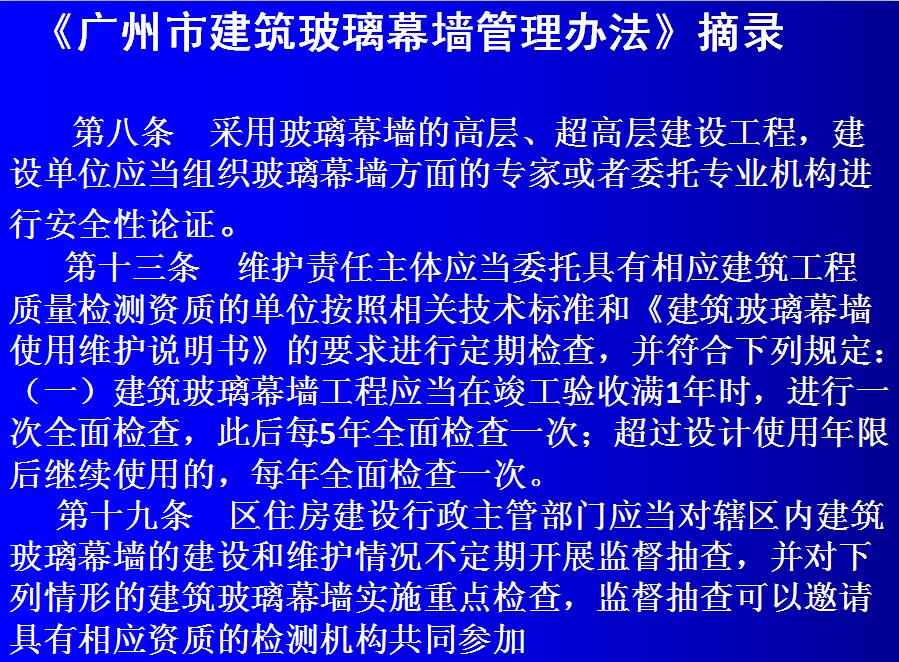 ![]() 《廣州市建筑玻璃幕墻管理辦法》措施明確,有效整治幕墻安全隱患