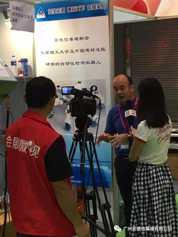“請問,這里是安德信幕墻嗎?聽說你們有幕墻檢測機器人,我坐了3小時的高鐵,專程趕來廣州……” 8月30日上午,也就是“廣州玻璃展”的第三天上午,一個中年男人急沖沖來到安德信幕墻的展位(廣州琶洲展館15.1館T03—17)。 他來自某省省直機關系統,29日傍晚才得知展會消息。為了咨詢玻璃幕墻的維修維護事宜,專程趕來展館,通過展會工作人員的引導,終于尋訪到了安德信幕墻的展位。 這并非孤例,展會期間,還有美國、以色列、韓國以及中國香港等地的客商。特意尋訪到 T03—17 ,他們的目的簡單、明確——技術咨詢、業務洽談。 現在,讓我們追隨現場鏡頭,感受既有幕墻行業高科技的魅力。