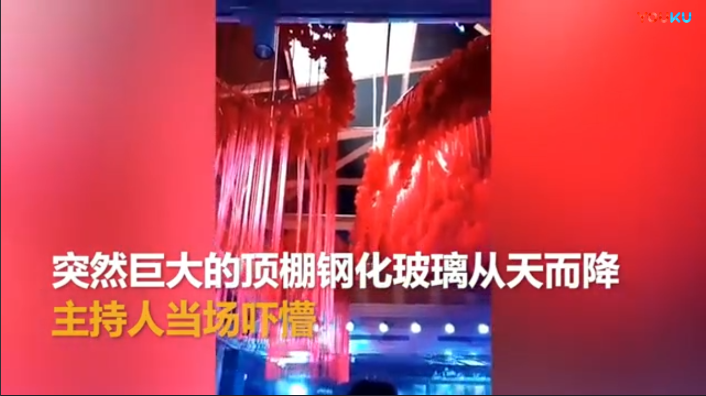 主持人正準備喊新郎家長上臺的時候,突然,酒店頂棚一塊巨大的鋼化玻璃從天而降……