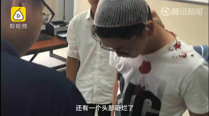 隨著一聲巨響,現場一片狼藉。 主持人被嚇懵。 兩名親友被砸傷,一人被砸暈,傷者身上血跡斑斑,緊急送往醫院救治。
