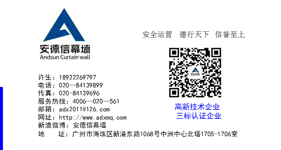 幕墻行業發展迅猛,高新技術層出不窮,標準規范不斷完善。安德信幕墻,力雖綿薄,但愿孜孜以求。