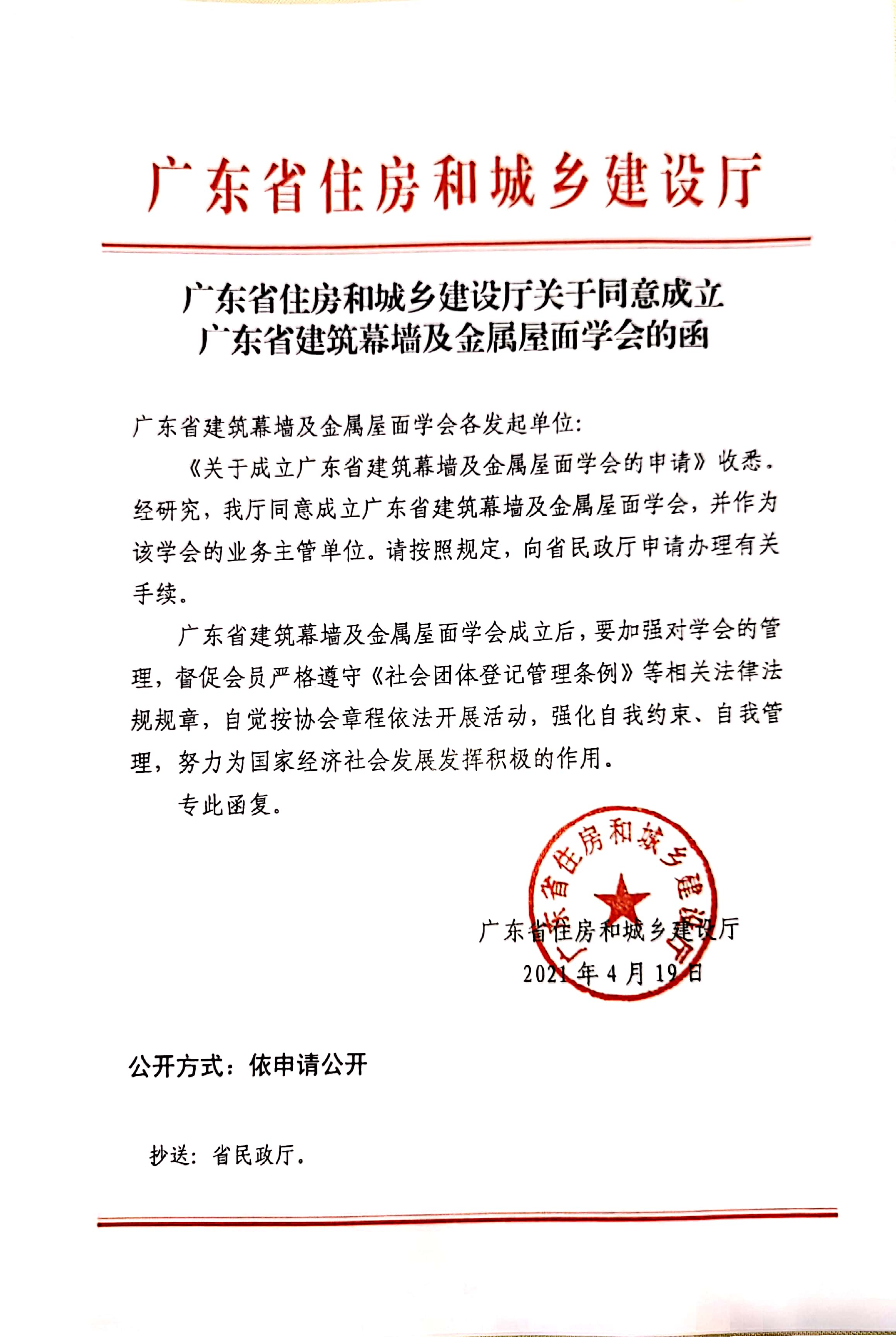 廣東省建筑幕墻及金屬屋面學會的登記管理機關是廣東省民政廳,業務主管單位是廣東省住房和城鄉建設廳。
