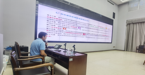 培訓會上黃埔區住房和城鄉建設局對上半年開展既有建筑玻璃幕墻、建筑外墻安全檢查巡查工作的情況進行了總結,部署下半年的工作的重點,特別強調要建立“區-街(鎮)-社區-所有權人”聯動機制,積極配合完成市、區的玻璃幕墻外立面巡查抽查工作,督促責任主體按要求進行自查自糾、履行安全義務。 本次培訓針對既有幕墻安全相關法律法規、《廣州市建筑玻璃幕墻管理辦法》、新頒布的《既有建筑幕墻安全檢查技術規程》的要點、既有幕墻和建筑外立面突發安全事件的應急處置、幕墻和房屋外立面常見的安全隱患等四個方面進行,列舉相關法律法條,深入剖析各方管理單位應承擔的管理責任與義務,結合今年檢查中發現的典型案例,詳細講解了既有建筑幕墻及外立面開展巡查檢查的工作重點和方法。