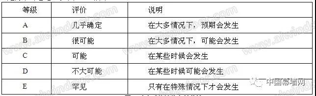 表4 幕墻結構設計風險可能性的定性估計