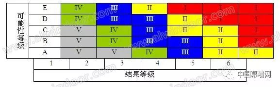 表5 幕墻結構設計風險嚴重性的定性估計 6.3 繪制分析矩陣