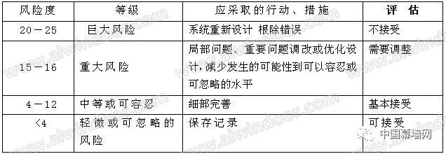 表8幕墻結構設計風險對應控制表 6.6 風險矩陣法評價的特點和局限性 特點: 1) 對后果和可能性進行分析 后果的推導在規范法規或評審技術要點中結論比較清晰;通過幾十年的試驗和事故分析,可能性比較明確。符合設計結構安全的目標要求。 2) 采用文字形式或敘述性的數值范圍描述風險的影響程度和可能性的大小(如高、中、低等) 評審報告中是建立在設計圖紙和計算書比較明確的論據上的定性判斷。 3) 分析的有效性取決于所用的數值精確度和完整性 幕墻工程的結構計算、實驗數據、檢測數據的理論和研究工具相對完善,提供的數據能易于地和規范、標準做比較。 4) 簡易的計算方式表推導出結論,有利于降低結論的出錯率。 5) 一旦制定出風險等級的條文細則(風險因素明確且較少,不確定性的描述容易表達和區分),很容易抓住評估重點和要點,提高評價效率。 6) 流程和報告形式比較有彈性,易于推廣。 局限性: 1) 本質上是主觀的成分較多:確定風險發生的可能性和后果的嚴重性,主要依據風險分析人員和專家的知識、經驗和歷史資料數據,對風險因素描述和定義(條紋細則),有時難以做到嚴格的定量化。 2) 對經濟性、實施可行性、時間性等相關價值評估的參考性較低,只能用于控制風險因素相對較少的項目評估。 3) 缺乏對風險降低的成本分析,或需要做進一步的輸入信息補充。 7 總結 本文風險管理控制理論體系著手,對建筑玻璃幕墻結構設計的風險識別、風險分析、風險評估、風險對應措施進行了具體闡述和講解。通過風險矩陣法在框架式玻璃幕墻結構設計安全評估中的應用,初步接觸了工程設計風險管理的強大功能,同時也證明矩陣法是一個提高設計評審效率、提高結構安全意識的有力工具。 結構安全是工程之本,在設計階段就加強風險管理意識,無遺是對設計人員本身技術水平的提高和自查,還是對企業、行業的安全管控,都起著重要的作用。本文僅僅是窺豹一斑,探索了幕墻設計的安全風險控管理的一角,愿能拋磚引玉,引起有志者的重視,投身到風險管理的事業中,對幕墻行業的發展做出貢獻。 參考文獻 [1] 《ISO31010》International Standard Risk management—Risk assessment techniques ,2009 [2] 《上海市玻璃幕墻結構安全性評論審查要點》,2017