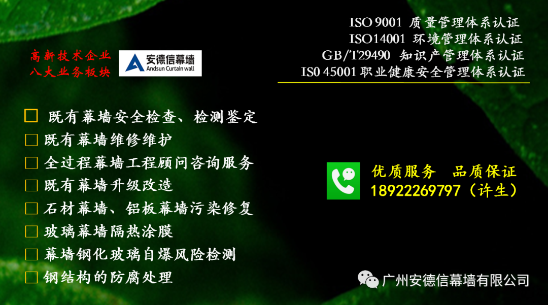 安德信幕墻,專注既有幕墻檢測檢查與維修維護的國家高新技術企業,公益宣傳房屋安全管理、幕墻安全管理政策法規。